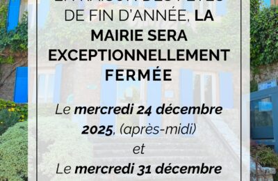 Fermeture exceptionnelle de la mairie À l’occasion des fêtes de fin d’année, la...